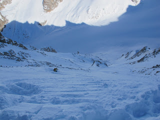 Today we had a good and quick run at Les Courtes NNE Face (aka the magnus face). The snow felt a little bit hollow on lower altitude but once we got on the face it felt good. The expected heat did not arrive either, making for a great and safe day on the mountain. The snow was chalky top to bottom.