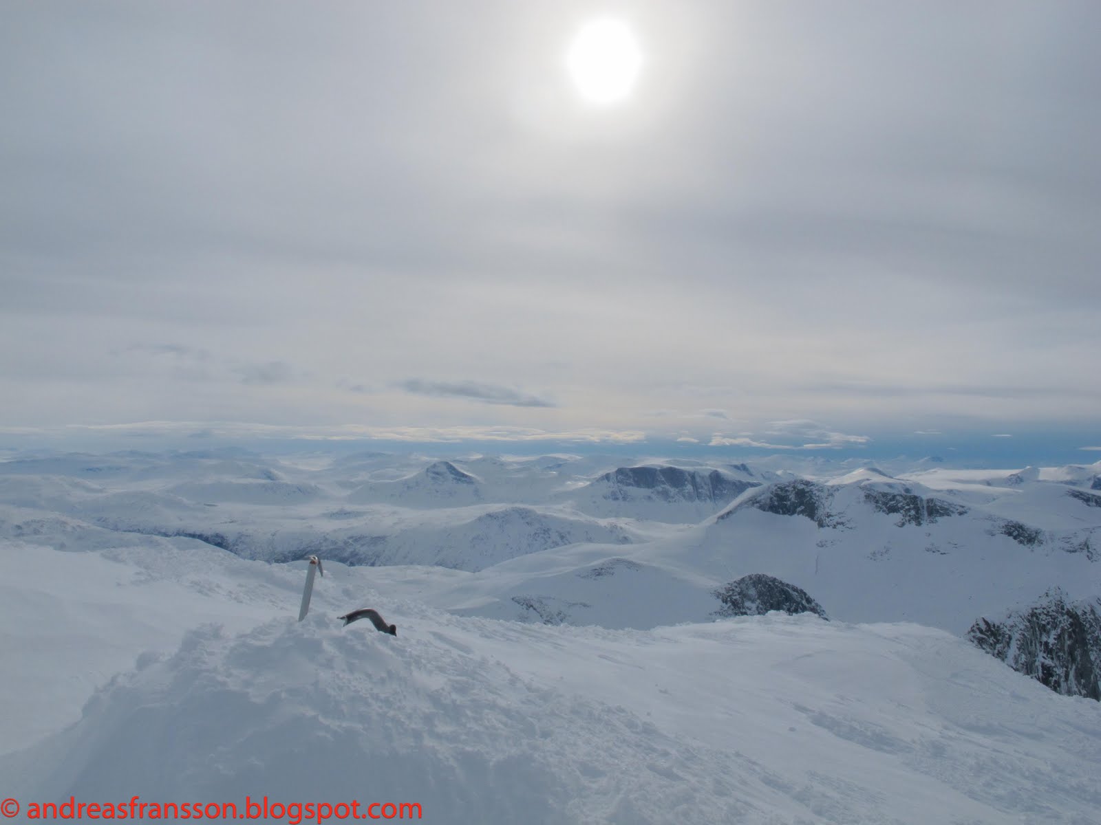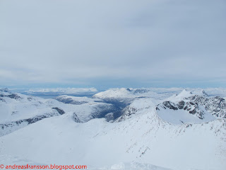 For the ski down I had no intent what so ever to go near the slopes I climbed up as that would have offered the worst skiing in my life, so I aimed for a fairly contrived line on the east face that was steep and exposed and not really fun to ski, but at least it was more exciting than the way up. I can put a few kronors on that no one had skied it before, but this is probably more due to something else than my skills…