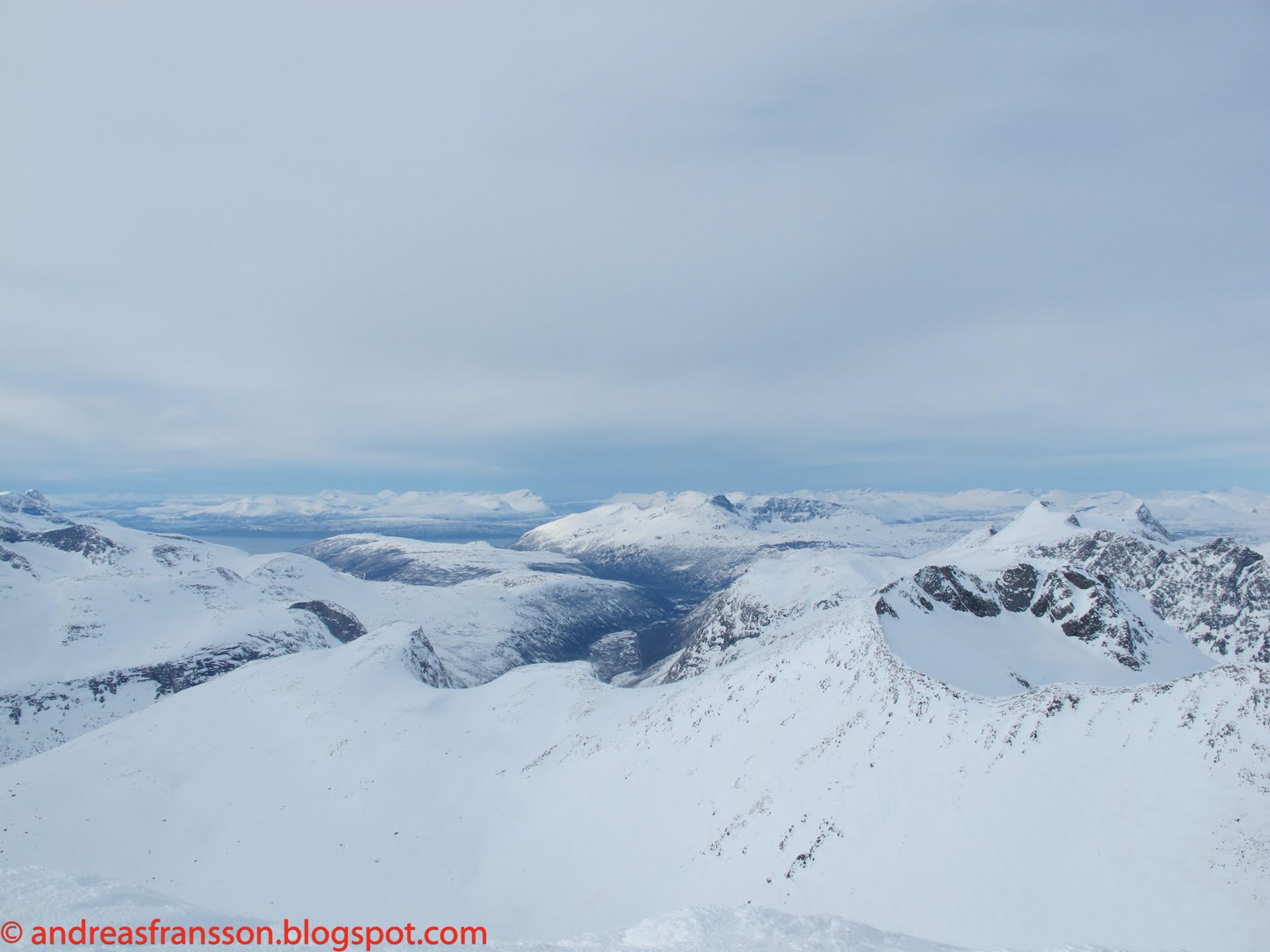 Last week, just before I went to Finland I wanted to have a big day out as a good ending to my visit to the north of Sweden and Norway. One of the few mountains I hadn’t climbed and skied in the area was also one of the most mythic ones – Kuinartjåkka. It’s a rock pyramid just in the middle of the Narvik and Skjomen mountains and is usually made as a two day ski tour from the Lossi huts. I had long a go spotted a line on the north east face that looked skiable and natural and I have ever since always wanted to ski it. Memory can though, as you sure know, remember things much better, nicer, more beautiful etc, as they really are. This I got to recall when I finally reached the mountain after a long approach. The mountain has about 1600 m vertical all and all and a few hours approach and in quality vertical meters it rises 800-900 meters from the lake making the line I had imagined on the north east face quiet something if it would have worked. But, arriving in front of the face I could see it wouldn’t really work out in reality without being contrived so I just kept on going around the mountain to the normal route.