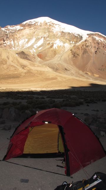 Arriving again in high camp we ate some ramen noodles that Bjarne had prepared before we continued down to BC. The sandy trail that had been hell on the way up was actually pretty easy sliding on the way down. We slept that night in BC before we continued down to the village of Sajama where we got fed and then driven to the hot springs out side of town.