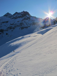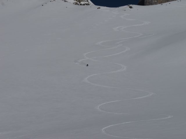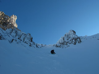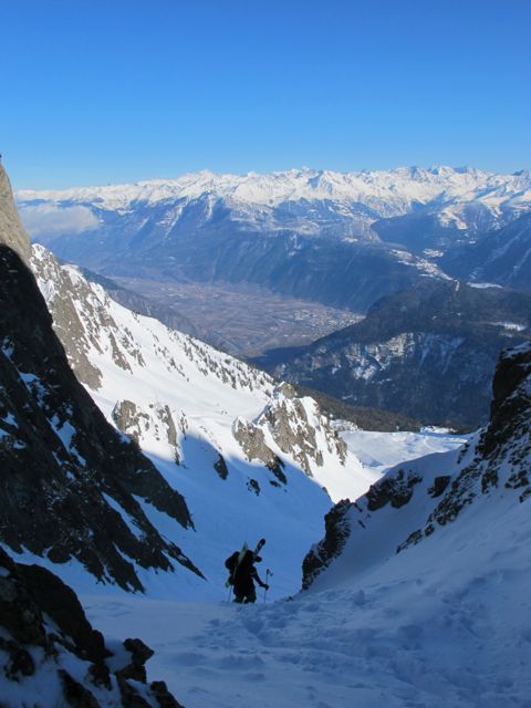 I just came back from a two-day ski tour around Dents du Midi in Switzerland with Bjarne Sahlén. We had planned to ski one of the awesome couloirs on the north side, but snow conditions where really tricky. First, on the south side we had to abandon our objective because of wind loading, and then, when we dropped in to our back up run it was also extremely wind loaded – so the only reasonable thing was to walk back up and call it a day.