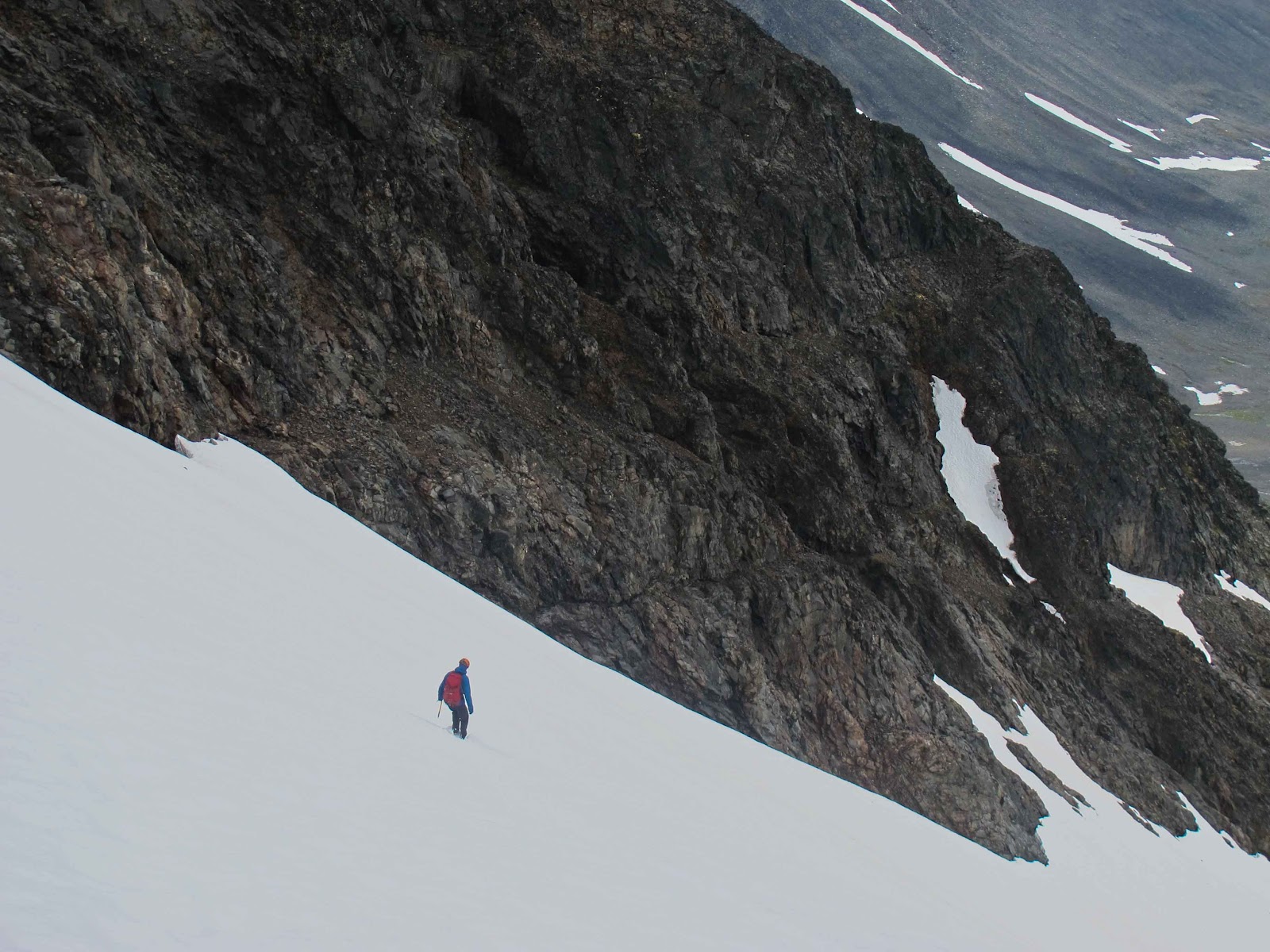 Early Monday morning I took of with Isaac Doude Van Troostwijk for the East Ridge on the North Summit of Kebnekaise, the second highest point in Sweden with its 2097 meters. From the summit of the north peak we did the ridge walk over to the higher south peak, and then back again traversing Kebnepakte and the Wolf Ridge down to the Tarfala hut.