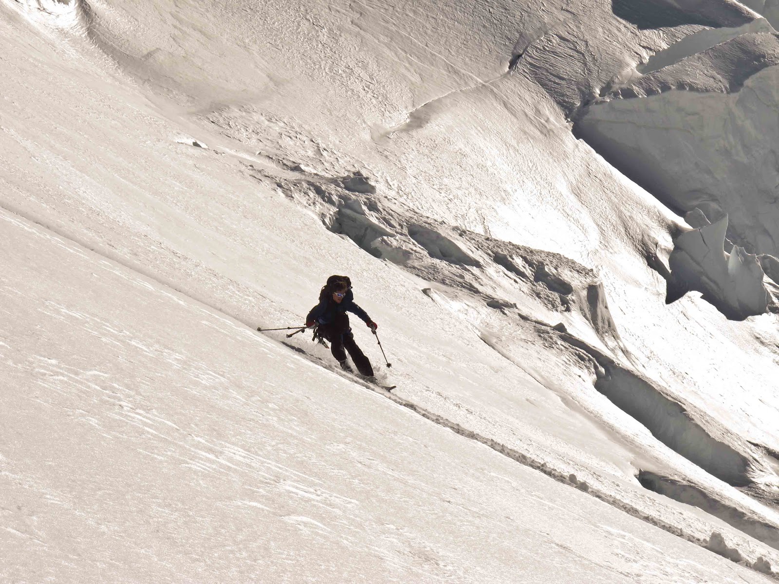 Skiing high up on the Whillans Ramp