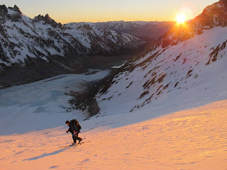 Then we had the great luck of running in to Mathias, Chris and Marvin from Austria who were in El Chaltén on a combined Ski and Climbing trip and who happened to have a car. They invited us to join them, and together we explored the mountains north of town including a beautiful couloir in the Cordon del Bosque Mountains and normal ski touring on Cerro Vespignani and Loma del Diablo.