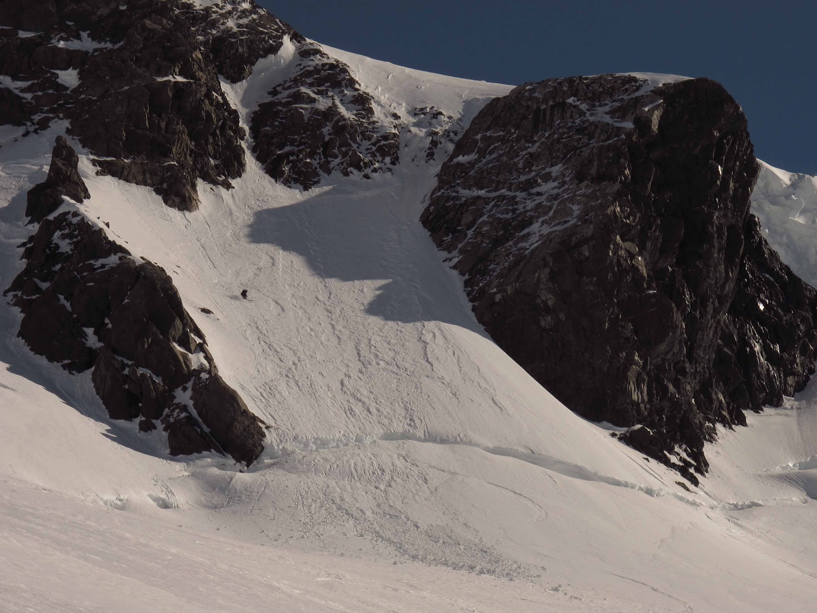 It was a wonderful feeling mixed with plain fear. The skiing is always skiing, and not that complicated, but I was concerned about the traverse with the rocky slabs with far from perfect snow lower down.