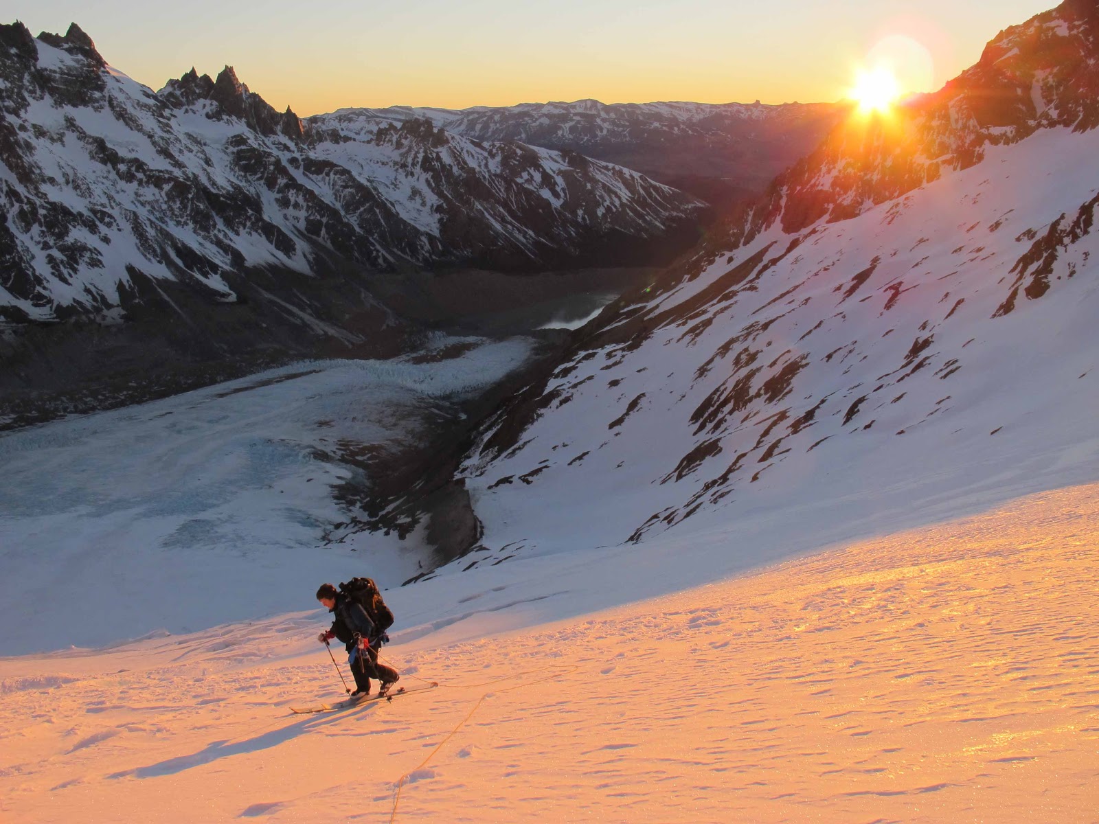Skiing on the East Ridge of Cerro Grande, Cerro Torre Massif, Argentina