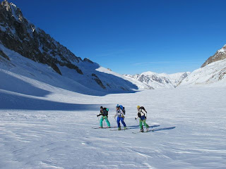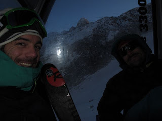 The lower slopes below the rappels served up with some really hard snow at the start that then got softer the lower down we came. Coming back to the mid station we luckily caught the last download for the day with the staff, as the storm and the foehn was closing down the lift.