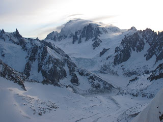 When we got back to town and Aiguille du Midi we got the third bin of the day and shared it with only five other skiers. Days like these this lift isn’t for anyone, as the easiest route down the mountain is going down one of the biggest glaciers in Europe, and the other ways would be graded from far above double black diamond slopes to some of the harder extreme skiing slopes in the world.