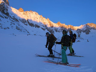 From the spires at the end of the ridge we decided to rappel down straight from there instead of doing traversing rappels 50 meters further down. This adds about 60m of rappelling, but on bomber anchors following the weakness of the face and just makes the whole puzzle much more confortable. I feel like the steep skiing community has evolved so much in the last 3-4 years, that this route, especially with the falline anchors, deserve to become a modern classic. Now days it seems like the only challenge on the north face of Midi is to open it up and to be there alone, and I think that translate to the Frendo too with the ability of the skiers of today.