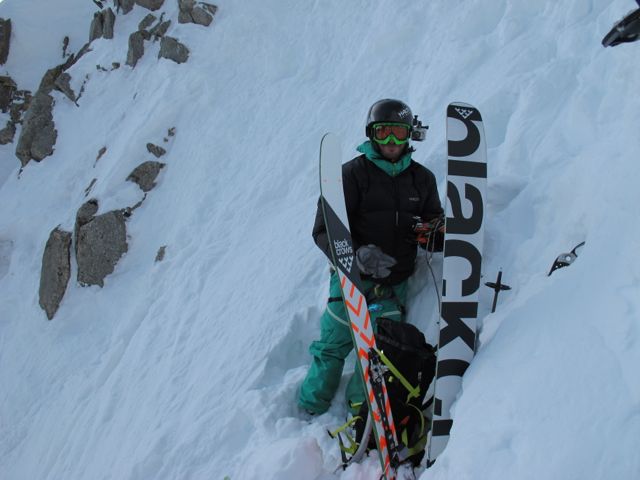 At the top of the mountain we met UK skiers Ben Briggs and Tom Grant and we realized we had the same objective. Coming from having written the above the choice was clear, either we skied it together with a relaxed and “as safe as possible” mindset, or we would go and do something else. Ben and Tom being two of Britain’s best mountain skiers as well as all over great guys, we quickly agreed to share the experience and dropped in on the face as a team of five.