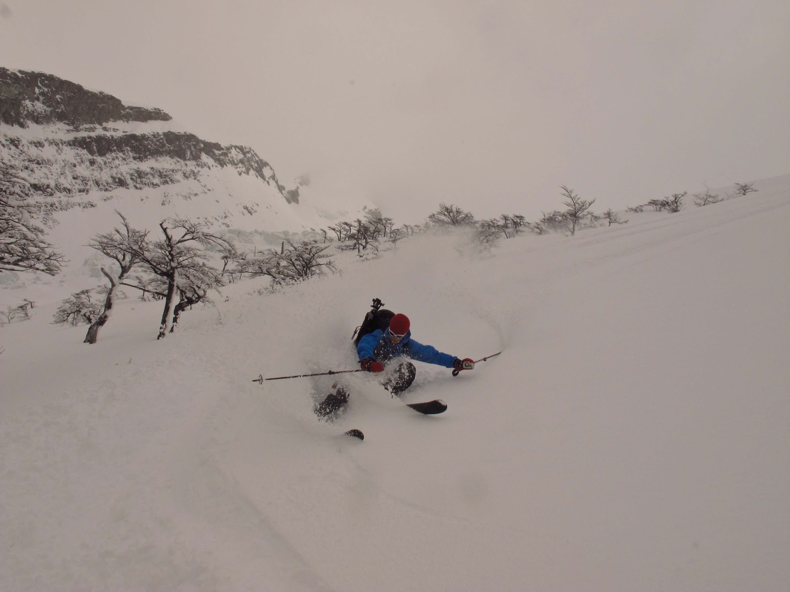 So here we are in the ghost town of El Chaltén, surrounded by warm and friendly locals in love with the mountains and with extremely difficult food conditions for vegetarians (I gave up). We have another three and a half weeks to explore this area, which means max a handful of small excursions up the mountains with heavy loads. And then maybe, hopefully, if we are lucky, we get to ski a king line. If it were easy it would be called snowboarding… 😉